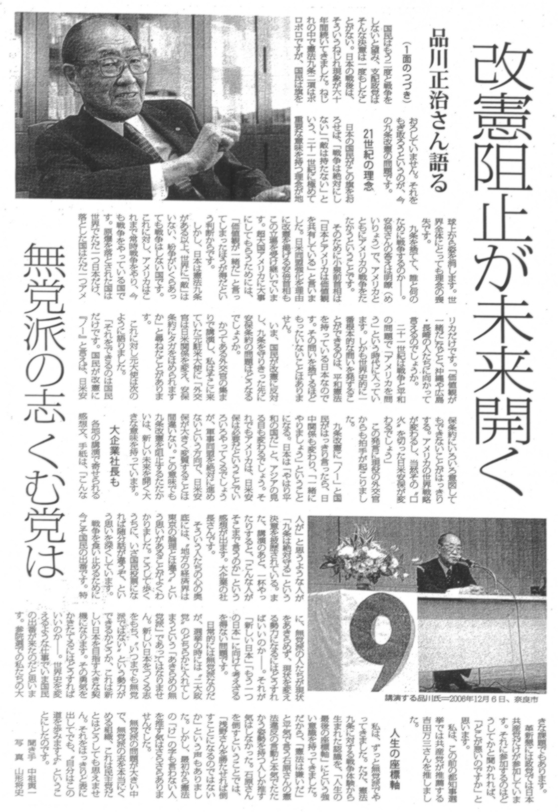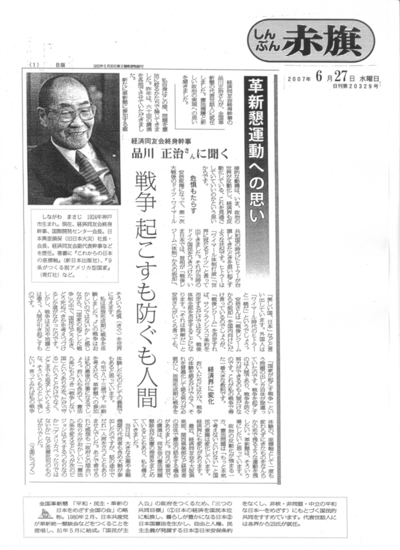 | 品川正治さん 全国革新懇代表世話人に インタビュー記事はこちら→ P1 P2 |